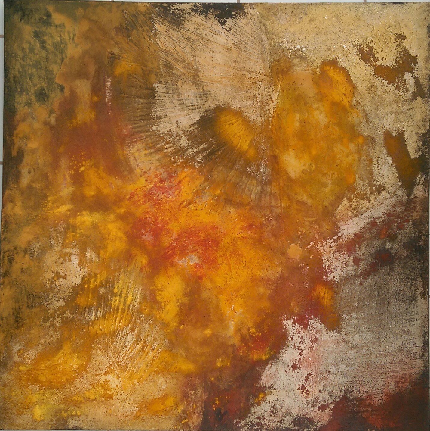 Ich bin eine Diplomingenieurin, eine Programmiererin, Controllerin, Keramikerin und ich male. Ich male, ich sprühe, gieße, kratze und spritze. Ich baue Strukturen aus Marmormehl, Spachtelmasse, Baumaterialien, Sand, Sägespänen, Kaffee, Wachs oder Strukturpasten. Die Techniken habe ich mir bei verschiedenen anderen Künstlern abgeschaut.