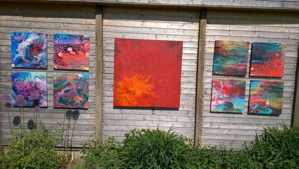 Ich bin eine Diplomingenieurin, eine Programmiererin, Controllerin, Keramikerin und ich male. Ich male, ich sprühe, gieße, kratze und spritze. Ich baue Strukturen aus Marmormehl, Spachtelmasse, Baumaterialien, Sand, Sägespänen, Kaffee, Wachs oder Strukturpasten. Die Techniken habe ich mir bei verschiedenen anderen Künstlern abgeschaut.
